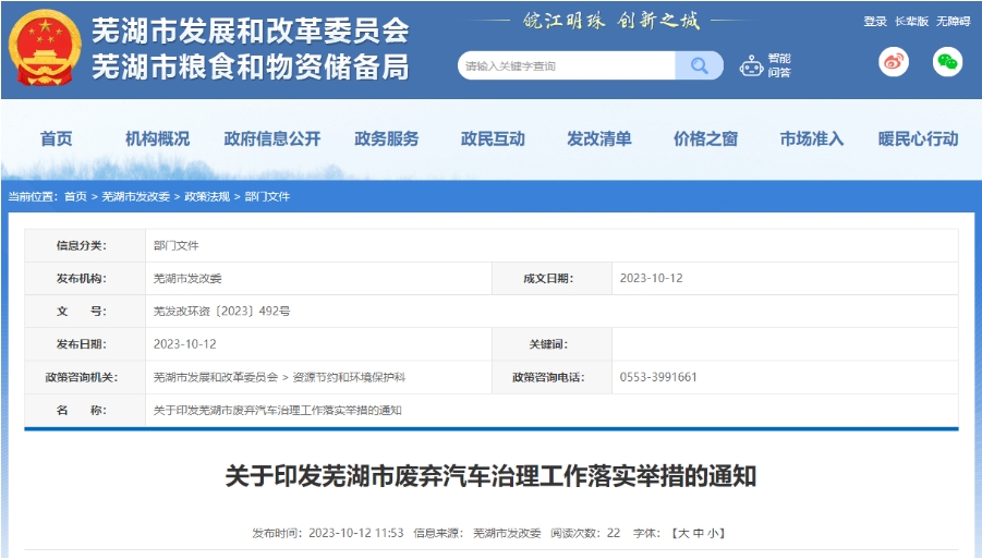 安徽省蕪湖市:建立健全廢棄汽車長效治理機(jī)制健全報(bào)廢汽車回收利用體系