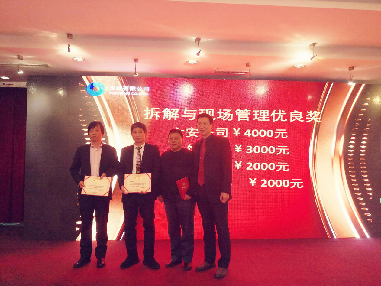 此次年會,公司設置了回收優(yōu)良獎、回用件銷售優(yōu)良獎、拆解與現(xiàn)場管理優(yōu)良獎、設備管理優(yōu)良獎、Z值優(yōu)良獎、費用控制優(yōu)良獎、經(jīng)營改善獎、F值-利潤優(yōu)良獎等8個集體獎項和14個個人獎項,現(xiàn)場表彰并獎勵了2018年度在各業(yè)務環(huán)節(jié)中表現(xiàn)突出的公司和優(yōu)秀員工,獲獎員工紛紛感言,表示要在新的一年里繼續(xù)努力,扎實工作,為公司的進步和發(fā)展做出自己新的更大的貢獻。
